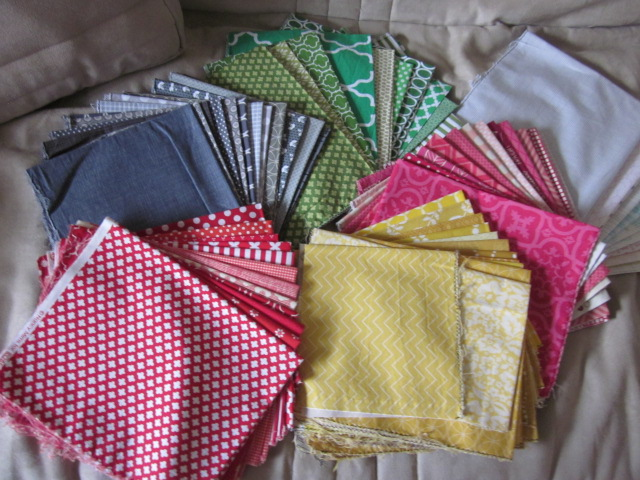 Men nu är jag hemma och har börjat med att plocka fram tyger. Jag prenumererar på en laddning av tolv FQ i månaden. Det som har kommit hittills har varit klara fina färger som jag tycker om. Tänker mig att använda dem.