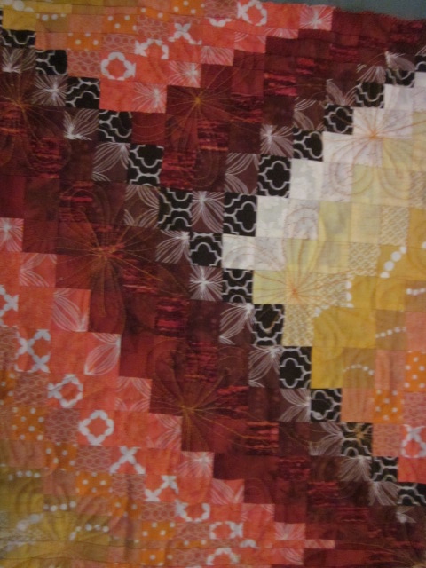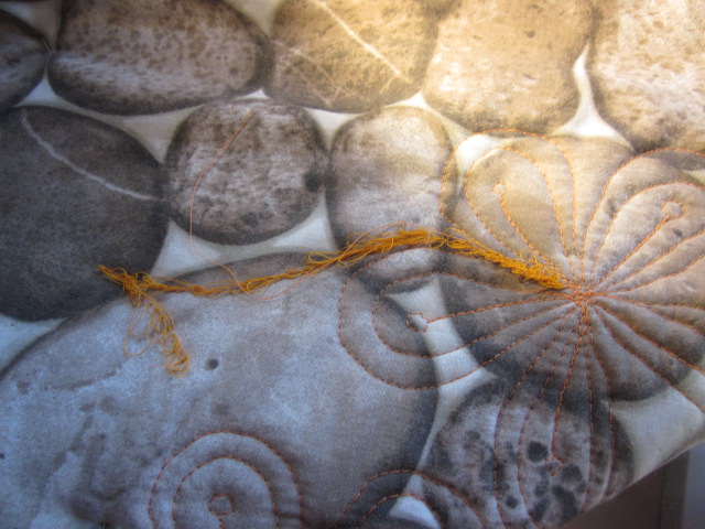 Men så går den riktigt fint vissa stunder så till slut lyckades jag bli färdig med quiltningen. Men mycket sprättning blir det. Och avslitna trådar som måste fästas. Fast jag är riktigt nöjd med slutresultatet. Om man klickar på bilderna ser man quiltningen lite bättre.