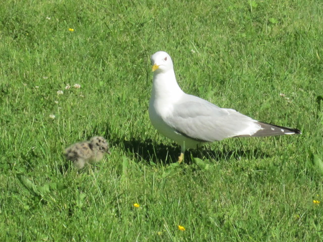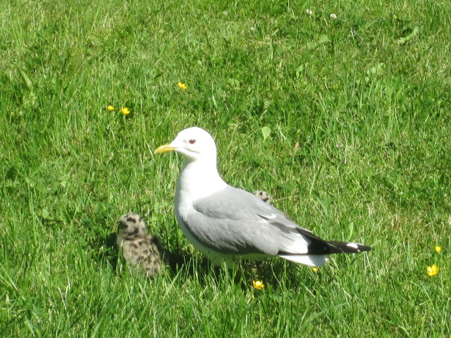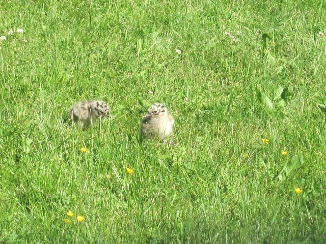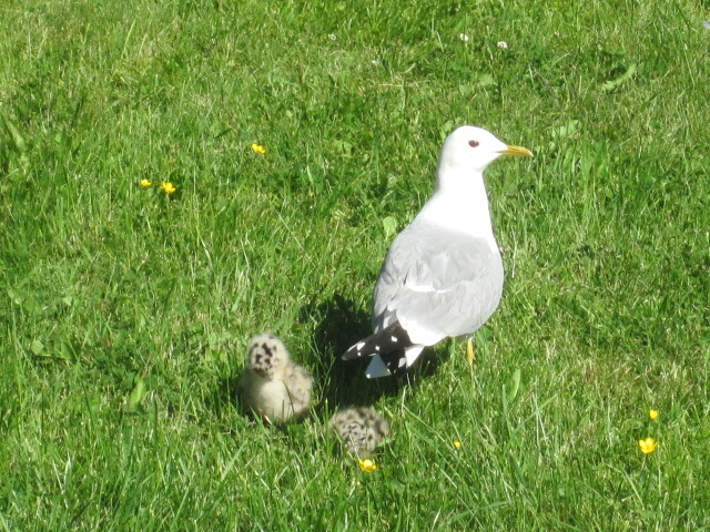 Jag försökte mota ut dem på berghällen, där de höll till i fjol. Men föräldrarna var väldigt vaksamma och aggressiva. Efter några timmars väntan tog jag mod till mig och bar själv ut dem. OJ vad föräldrarna skränade. Men jag var ju tvungen att få bort dem från gräsmattan för att kunna klippa den.