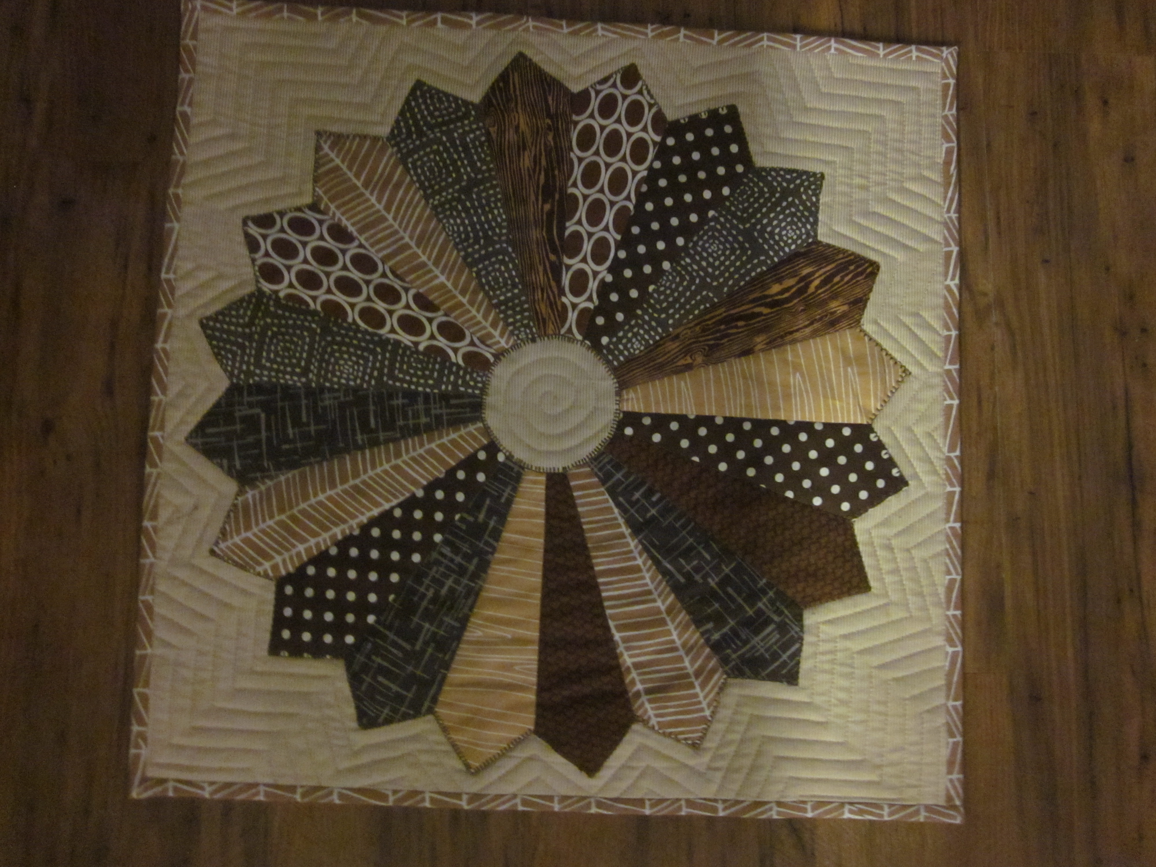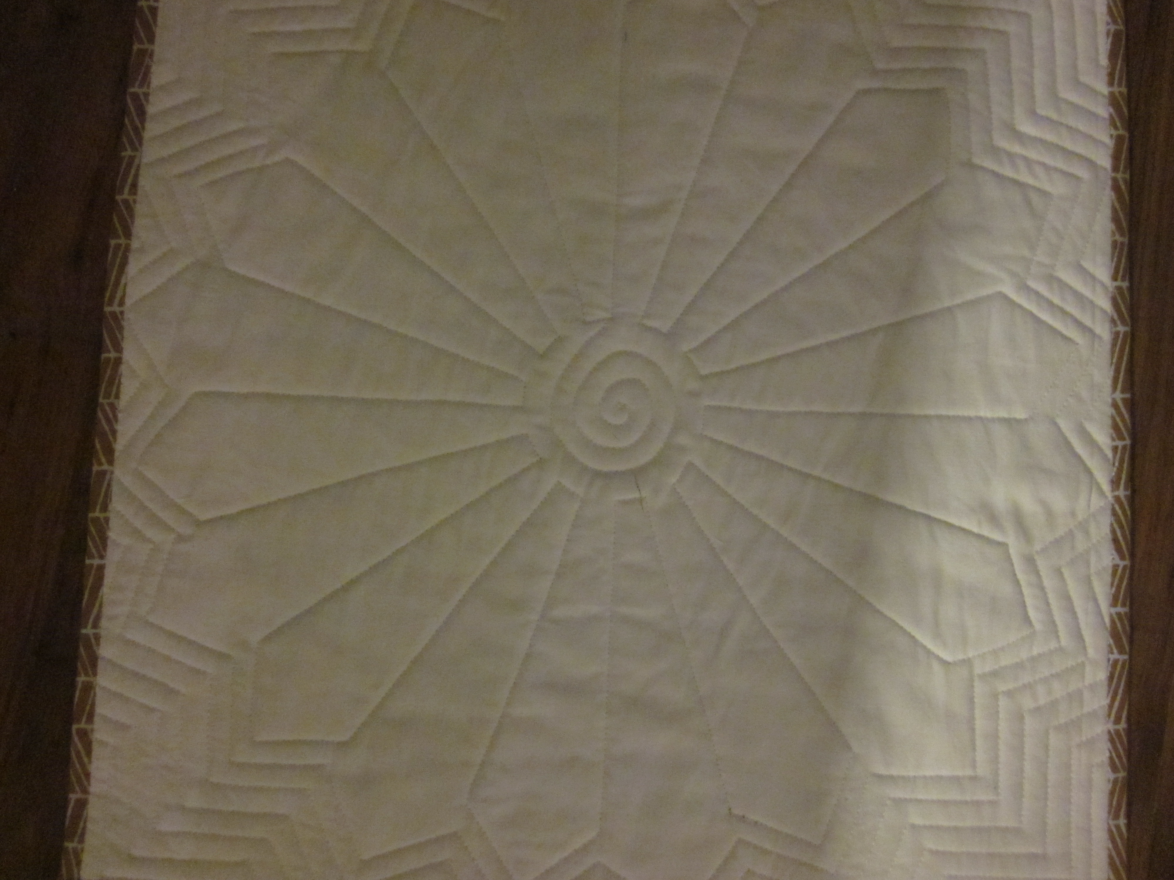 Jag är nöjd med allt utom den där larviga snurran i mitten. Ville först göra hela cirklar men då skulle jag få för många trådar att fästa. Så det blev snurran.