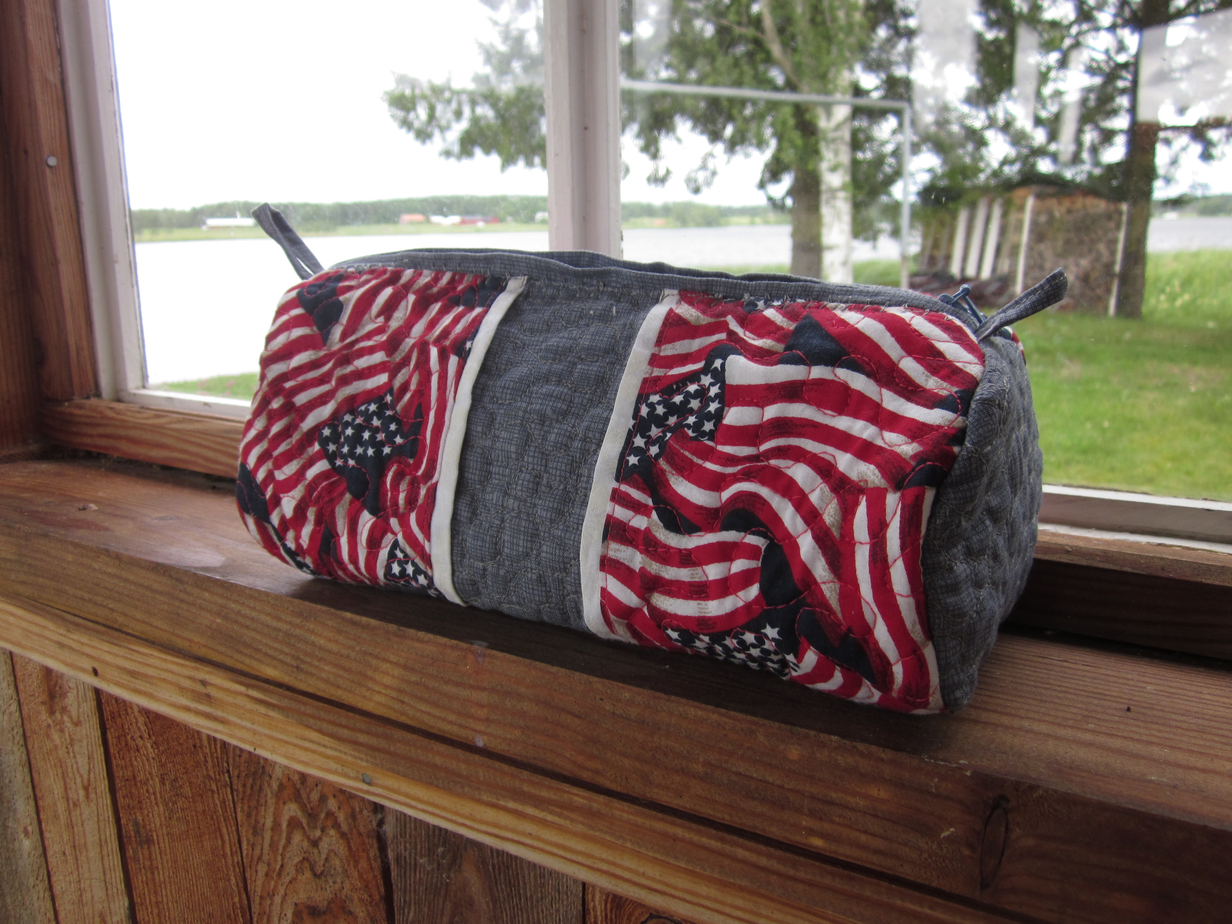Förra våren var jag till USA och köpte på mig en massa tyger. Då kunde jag ju inte låta bli att köpa ett med amerikanska flaggan på. Det tyget har naturligtvis blivit liggande. Visste ju inte vad jag skulle göra av det.