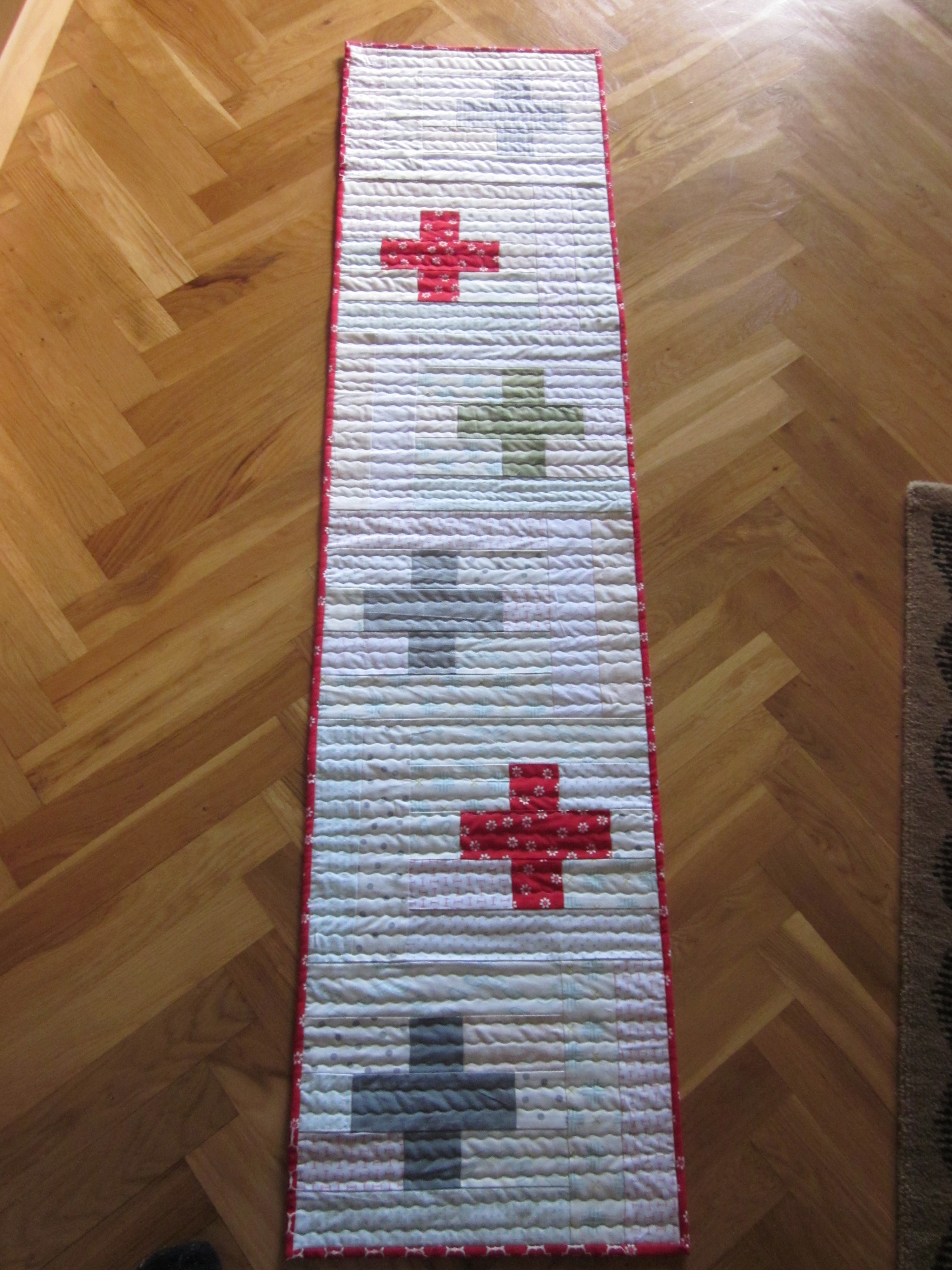 Efter förra numret av Fat Quarter såg jag flera stycken som gjorde pluslöparen som fanns i tidningen. Det gjorde jag också. Men eftersom jag tänkte ge bort den så har jag väntat till nu med att visa den.
