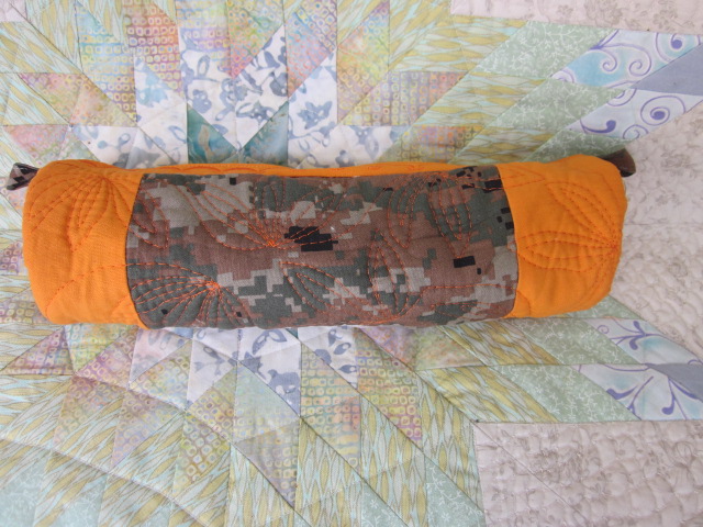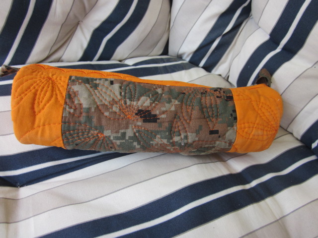 Jag gjorde ett litet pennskrin till Emil av den allra sista biten av kamouflagetyget jag köp till honom.
