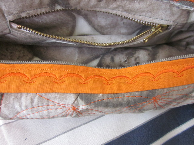 Det räckte bara till en liten bit på ena sidan och till flärparna. På den andra sidan fick jag lov att ta ett annat tyg. En ficka med dragkedja inuti.