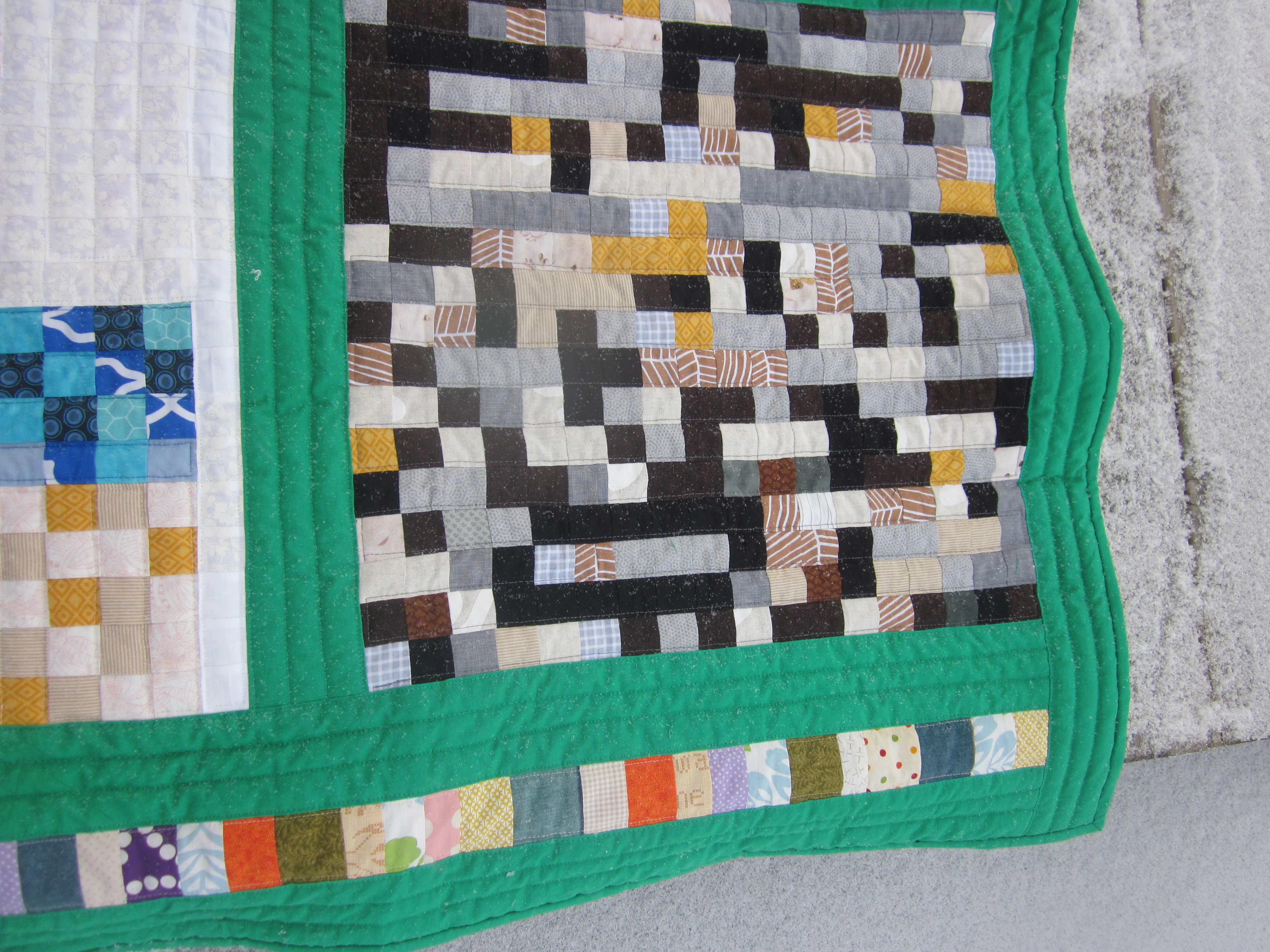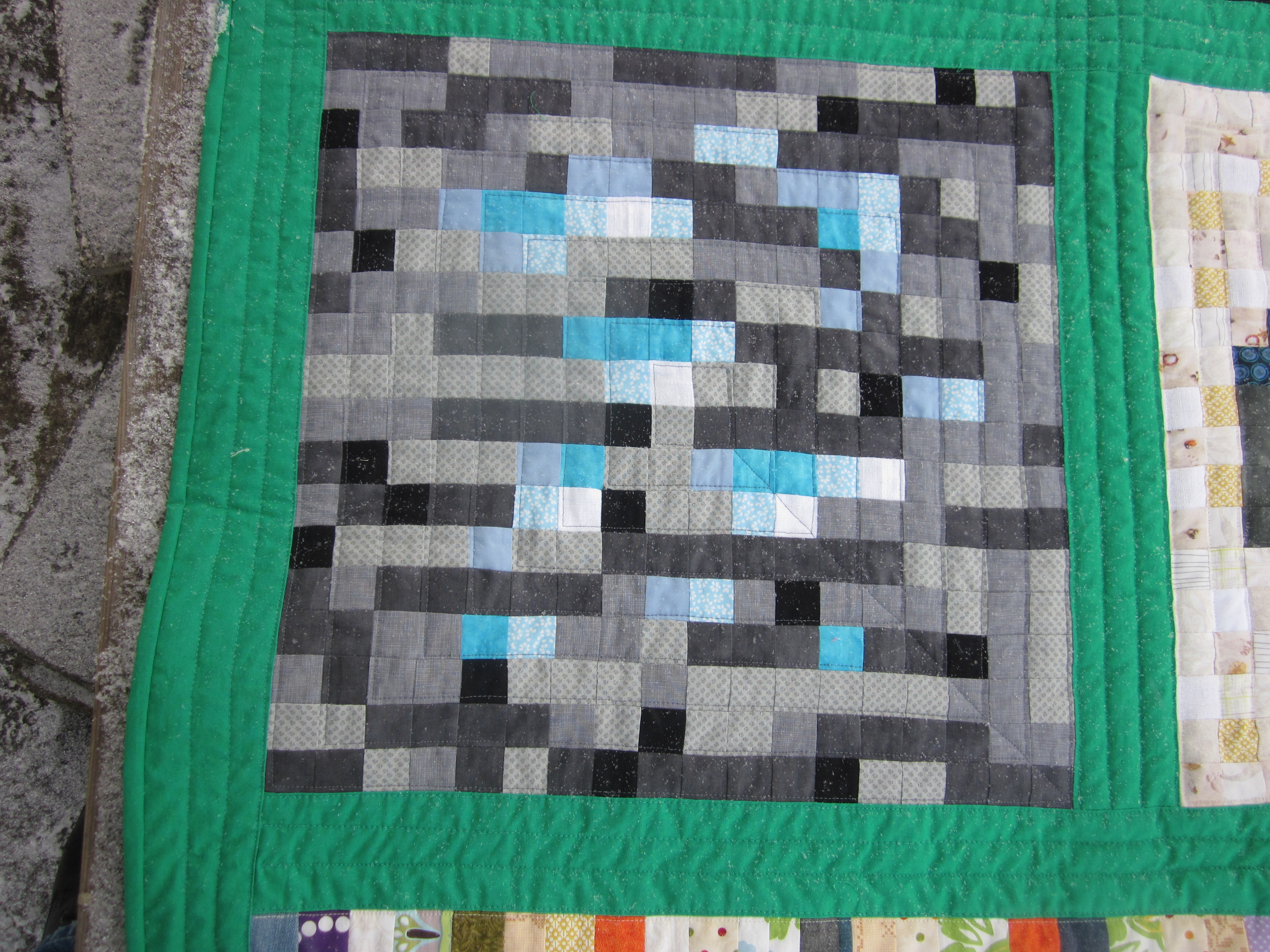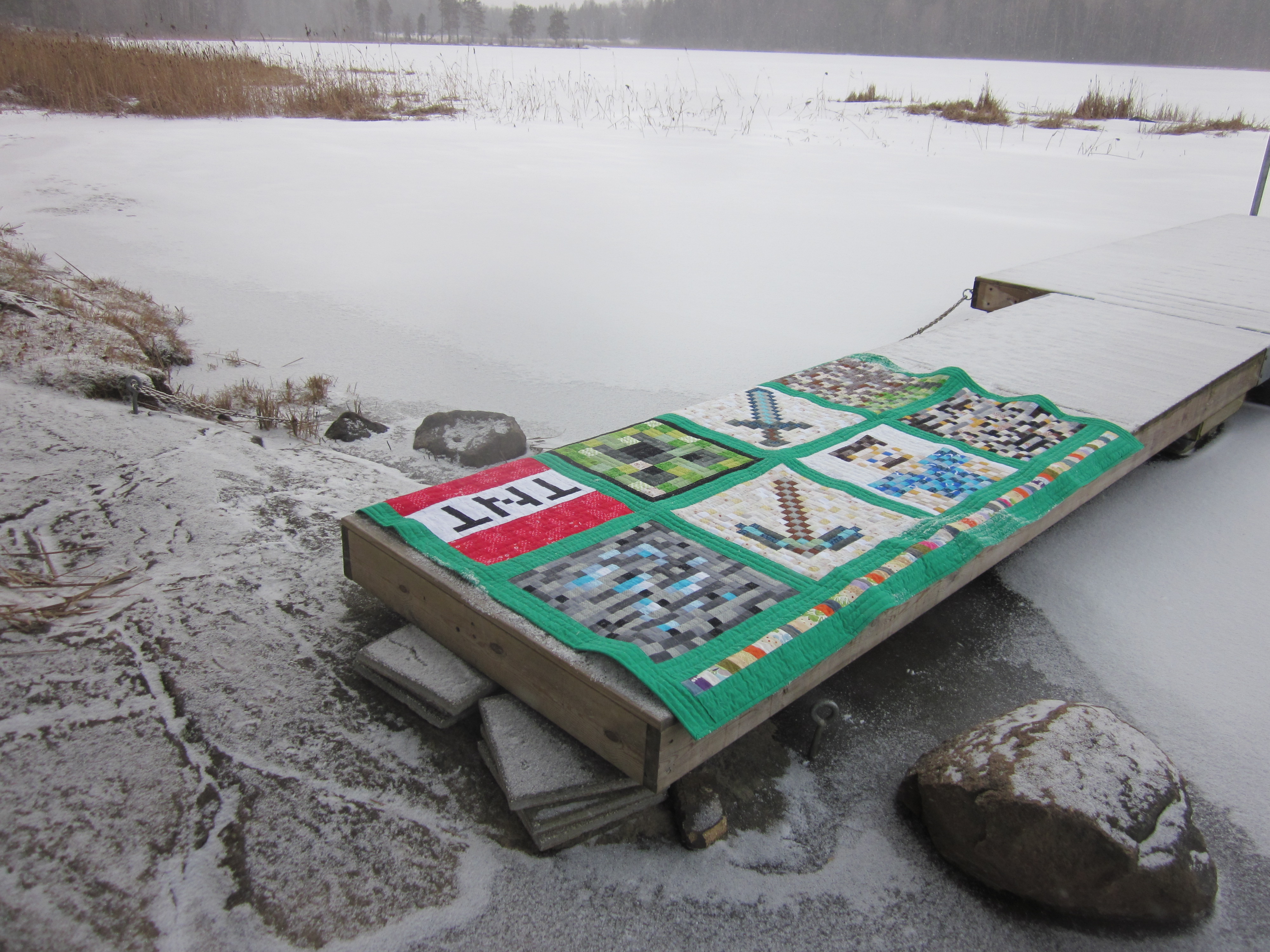 Åh, vad kul den var att sy. Varje block innehåller 256 rutor. Gånger åtta block blir alltså 2048 rutor totalt. Undrar hur många meter tråd det har gått åt? Men varje minuts sömnad var superkul. Till och med att den där söndagen jag satt och sprättade känns kul nu i efterhand. Det blev ju så mycket bättre efter sprättandet. Färdigt mått är 224 x 137 cm.