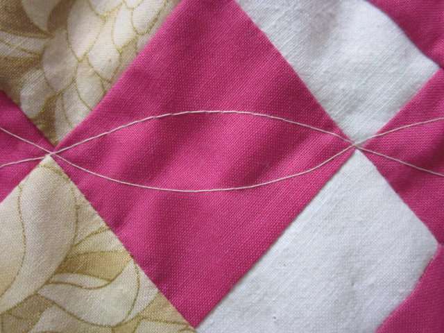 Här syns det lite grann hur olika sömmarna kan bli. Då har jag ändå sprättat det allra värsta. Det känns som att jag sprättat nästan en hel trådrulle på denna quilt.