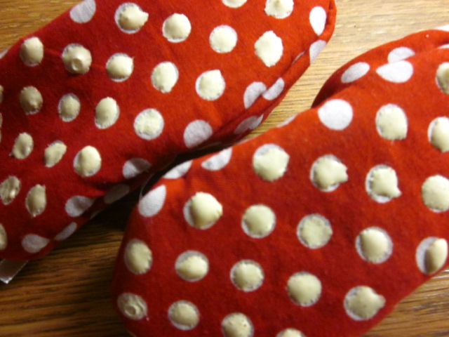 Doris beställde röda tofflor. Och eftersom jag dessutom blivit informerad om att hon gillar prickigt så blev det dessa.