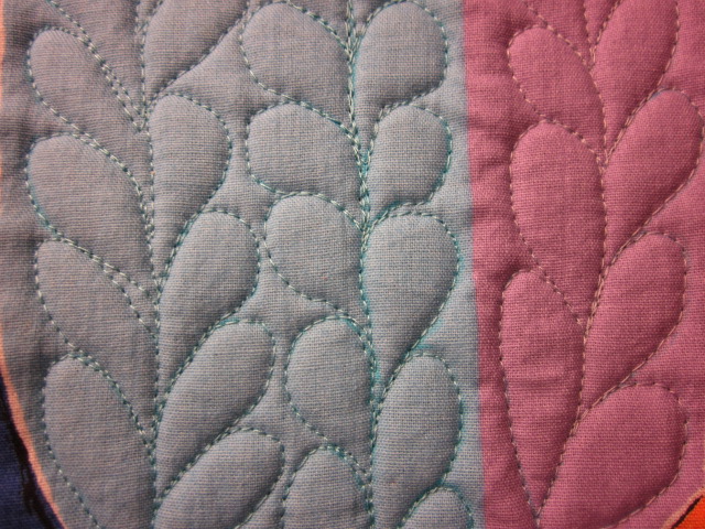 Här ovan är några närbilder på Husqvarnans quiltning.