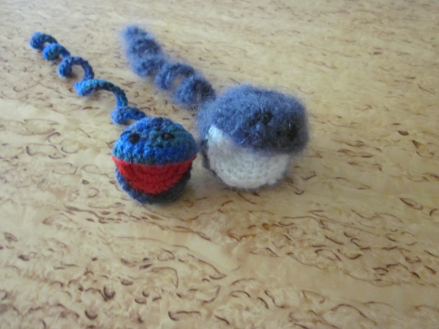 Lite grann har jag faktiskt virkat under semestern. Ett par till Babblare blev det, ett par bokmärken och ett enögt monster. Men oftast var det ju för varmt att virka och hålla i garnet.