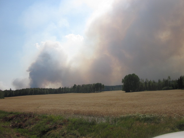 Sen åkte jag hemåt vid två tiden. När jag kom ut på stora vägen såg det ut så här.Då börjar man fatta att det är nog en rejält stor brand. Men den är ju fortfarande långt borta.