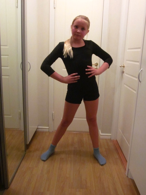 När all sömnad till tävlingsdräkterna var klar fanns det massor med svart tyg över. Det blev dessa uppsättningar.