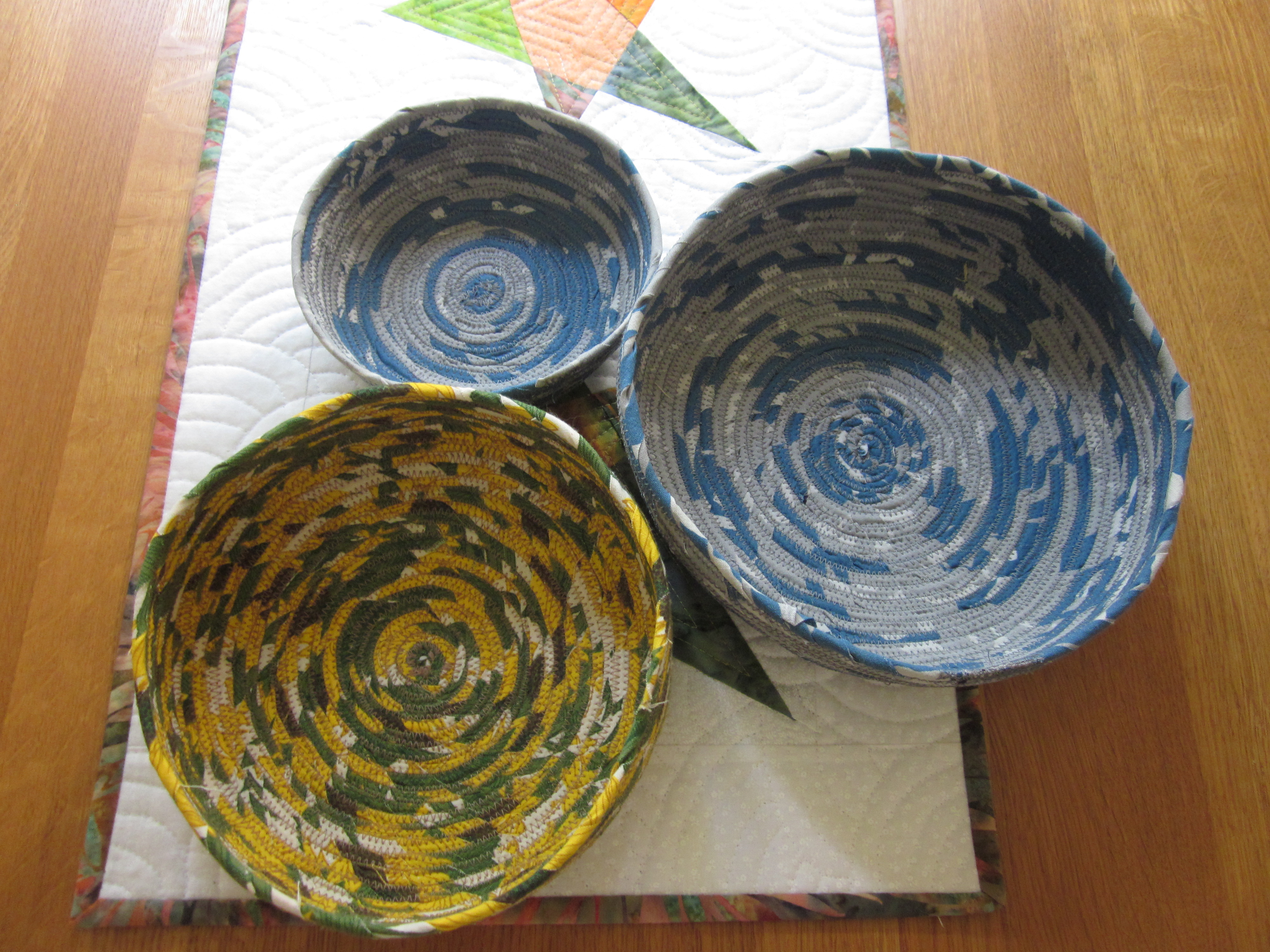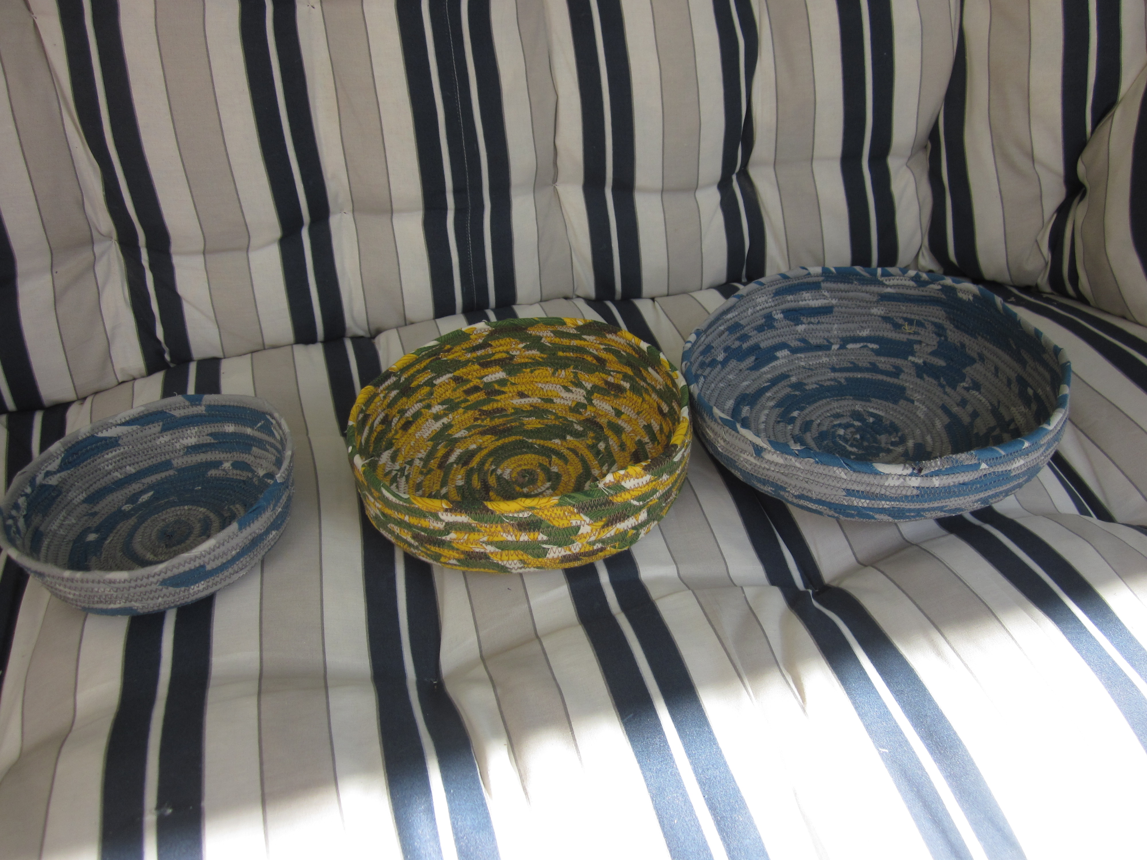Jag satte omedelbart igång att sy några skålar. Tycker de är så gulliga. Använde bara gamla fultyger.