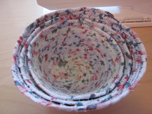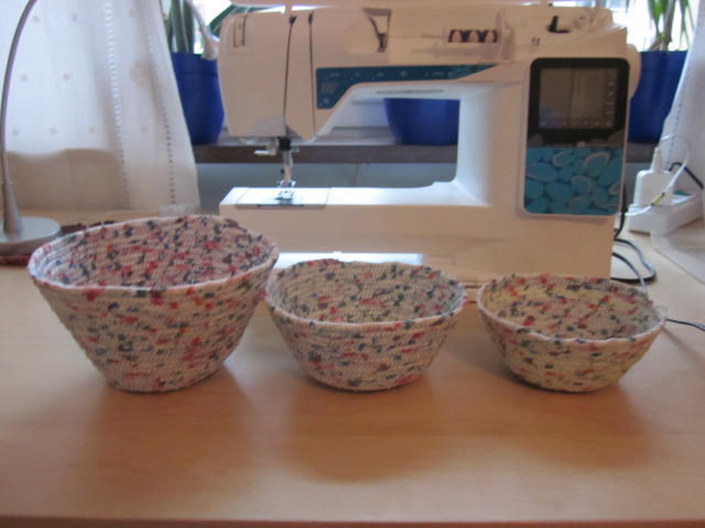Häromdagen surfade jag runt på nätet och hittade en film om hur det går till att göra små tygskålar genom att snurra tyg runt passpoalband och sedan sy ihop. Fråga mig inte om adressen för jag har tyvärr ingen aning.