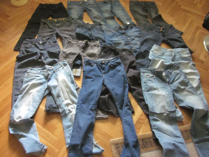 Det första jag gör är att bryta mitt löfte!!! Av alla jeans jag fått från Tina verkade kjolen roligast. Så därför "råkade" den hamna mitt på framsidan av kudden, med hela knappraden… Sorry Emil, lovar att lära mig hålla löften bättre i framtiden! ;)