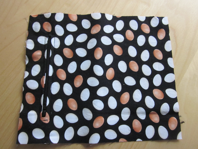 Så när jag ändå hade ångan uppe började jag med en till. Nu gick jag in på mina egna tyger. Hönor på utsidan och ägg på insidan var tanken. Men nu hade jag blivit lite för självsäker. Som vanligt ville jag sy en liten innerficka. Smarta jag sätter den på fel ledd…..