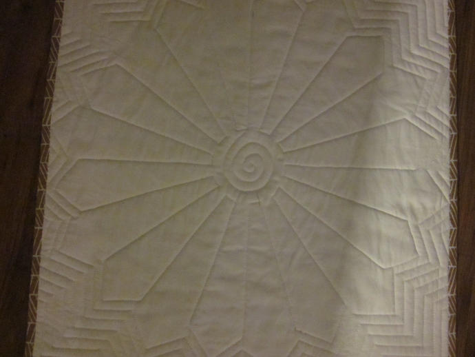 Jag är nöjd med allt utom den där larviga snurran i mitten. Ville först göra hela cirklar men då skulle jag få för många trådar att fästa. Så det blev snurran.