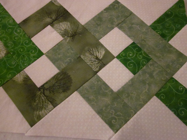 Stärkt av att lyckats lista ut hur Bambi gjort så testade jag en duk till. Den här är jag jättenöjd med. Har kommit fram till att jag är väldigt fascinerad av kedjeeffekter (och 3D). Och eftersom min symaskin fortfarande är på service (fjärde veckan nu) så har jag sytt allt på min gamla maskin. Och tänk, på den går det att quilta. Nu skulle jag vilja quilta något jättefint på den här duken, men jag vet inte vad. Därför ligger den än så länge bara och väntar.