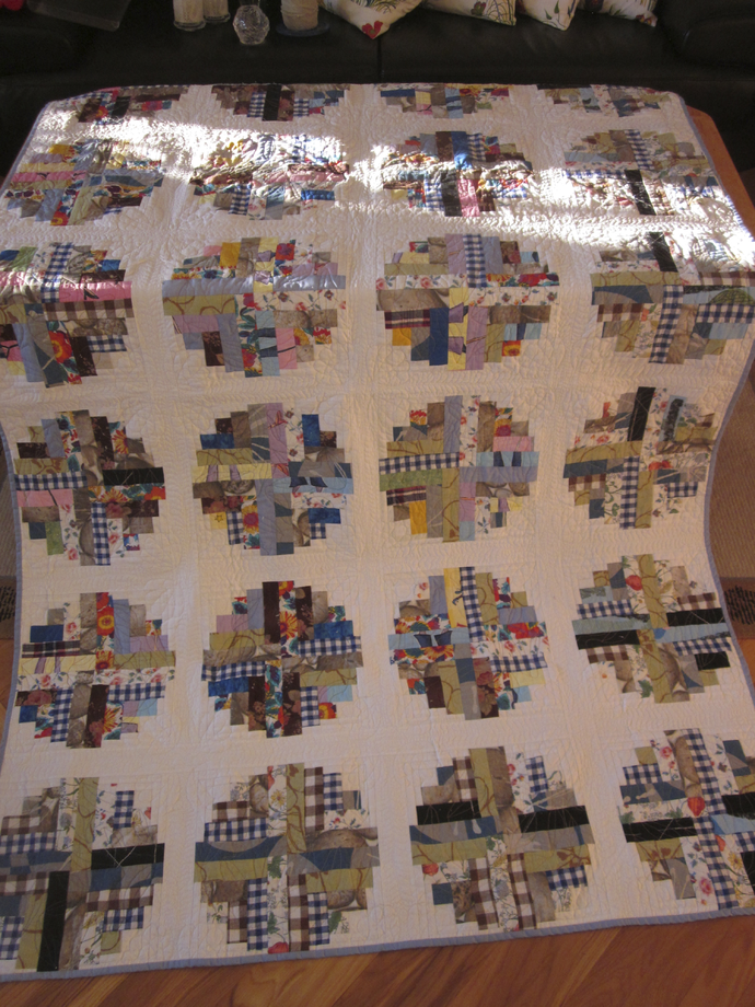Så nu har jag fotograferat min nya quilt inomhus här hemma istället. Det får duga det också.