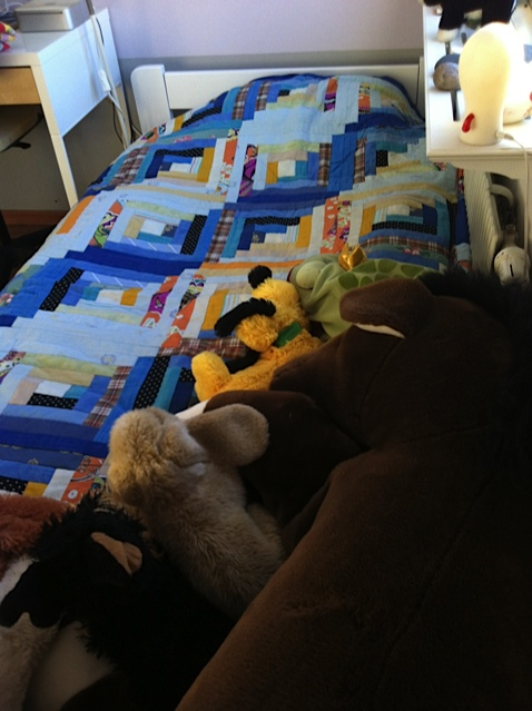 Så har min utsände privatfotograf Tina försett mig med ett par foton på mitt allra första lapptäcke. Det fick barnbarnet Leia.
