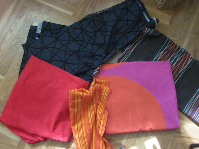 Om man är tillräckligt ihärdig och tjatig så får man till slut en beställning. Nu ska här sys en picknikfilt av dotterns gamla gardiner och draperier.