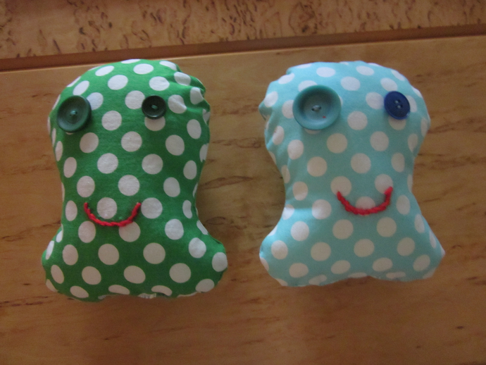 Och så har jag haft besök av barnbarnet som ville sy ett par gosedjur. Hon valde länge, länge bland mina tyger. Sedan ritade hon mönstret. Jag fick klippa ut mönstret i tyget, men det hade hon klarat själv. Sedan letade vi länge, länge bland alla knappar till ögon. Sedan sydde hon sakta och försiktigt så hon fick alla svängar jättefina. Helt klart ett sömmerskeanlag!!